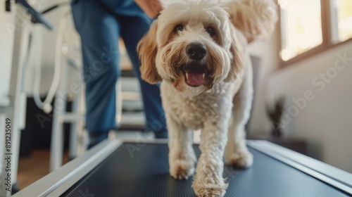 Happy Cockapoo Dog on Treadmill Exercising