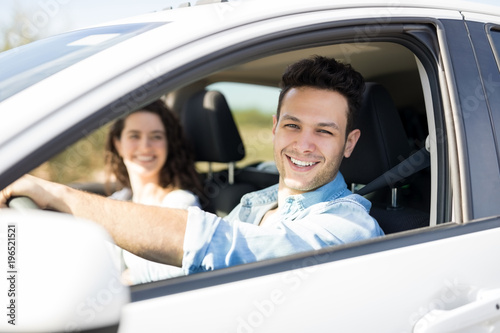 Happy couple on road trip