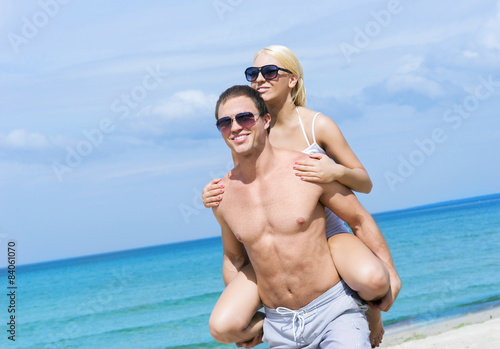 Happy couple relaxing on a sunny beach
