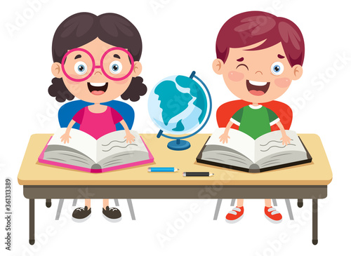 Happy Cute Cartoon School Children