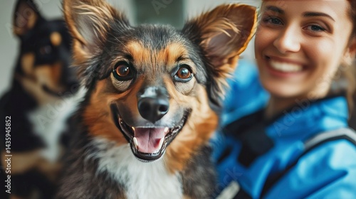 Happy Dog with Owner, Close Up Portrait