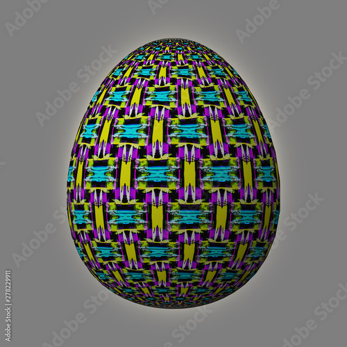 Happy Easter - Frohe Ostern, Artfully designed and colorful easter egg, 3D illustration on grey background