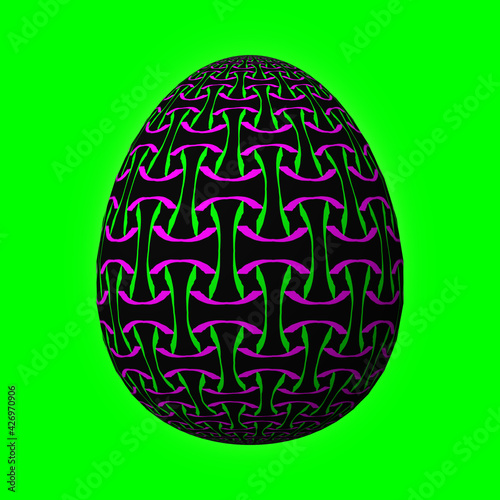 Happy Easter, Artfully designed and colorful 3D easter egg, 3D illustration on green