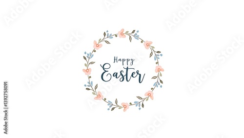 Easter Floral Wreath with Happy Easter Text