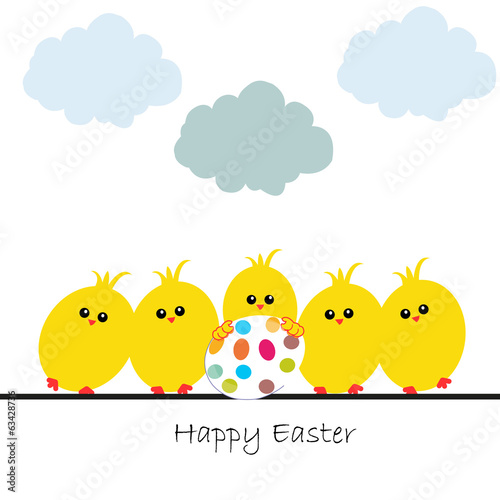 Happy easter greeting card, chicks and egg vector