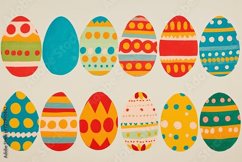 Happy Easter. Set of Easter eggs with different texture on a white background.Spring holiday. Illustration. Happy easter eggs