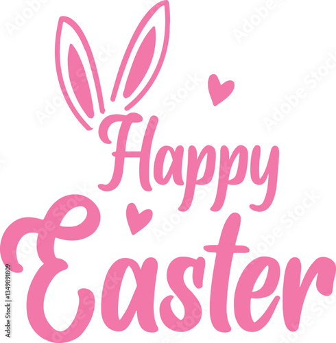 Happy Easter typography clip art design on plain white transparent isolated background for card, shirt, hoodie, sweatshirt, apparel, tag, mug, icon, poster or badge