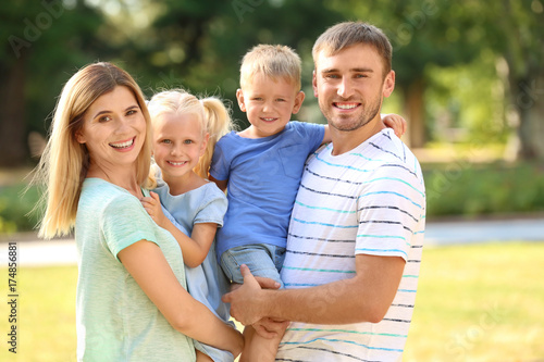 Happy family in park on sunny day