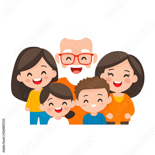Happy Family Portrait with Grandparents and Children Smiling Together