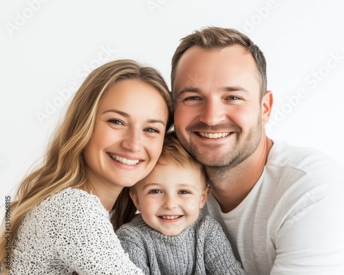 Happy family studio photo white background