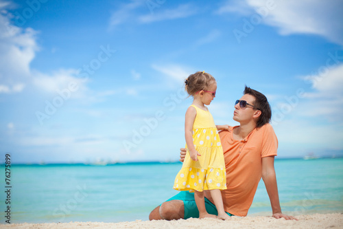 Happy father and his adorable little daughter at tropical beach