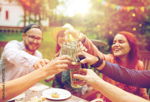 happy friends with drinks at summer garden party