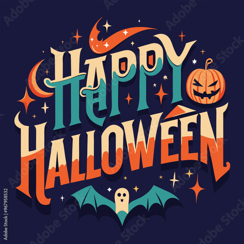 Happy Halloween Design with Spooky Bats and Pumpkin Graphics