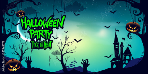 Happy Halloween Poster, night background with creepy pumpkins, illustration. vector elements for banner, greeting card Halloween celebration.
