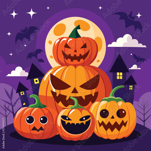 Happy Halloween Pumpkin Set, vector illustration