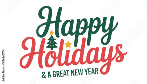 Happy Holidays and a New Year greeting with Christmas tree holiday greeting festive