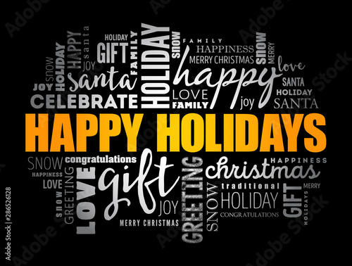 Happy Holidays. Christmas word cloud collage, holiday concept background