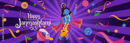Happy Janmashtami Horizontal Krishna Janmashtami Banner