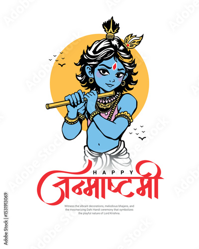 Happy Krishna Janmashtami and Dahi Handi Festival Celebration in India Social Media Greeting Post Design