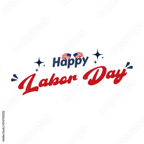 Happy Labor Day greeting festive design with stars and USA flag elements vector illustration