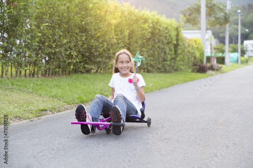 Happy Little Girl Driving Her Toy