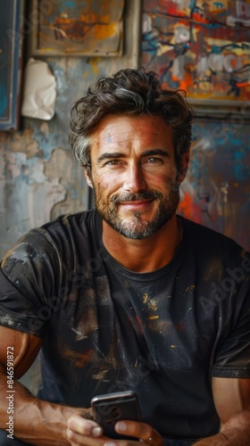 Happy Man on Phone Generative AI