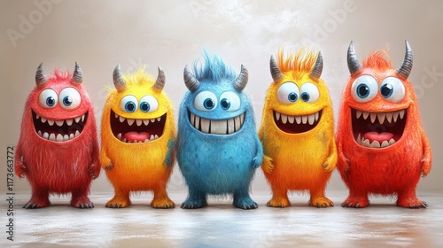 Happy monster characters with big smile