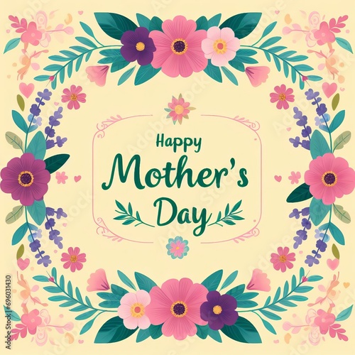 Happy Mother's Day, congratulatory illustration for mother's day, heart, flowers, gift