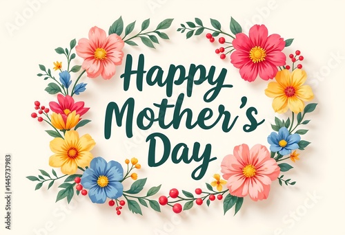 Happy Mother's Day Floral Wreath Design Colorful Flowers and Elegant Typography