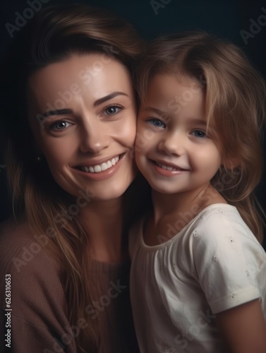 Happy Mother's Day. Mather and daughter smiling happily. Generative AI