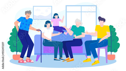 Happy multigenerational family bonding in a cozy living room. Perfect for family oriented content, lifestyle articles, and advertisements.