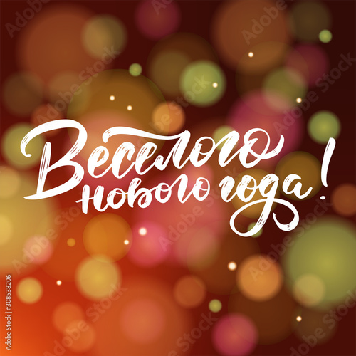Happy New Year - Russian holiday. Happy New Year handwritten lettering, typography design for greeting cards and poster. Russian translation: Happy New Year. illustration of bokeh effect