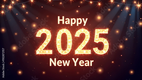 Happy New Year 2025 Celebration with Lights. Concept of Holiday, Party, and Festive.