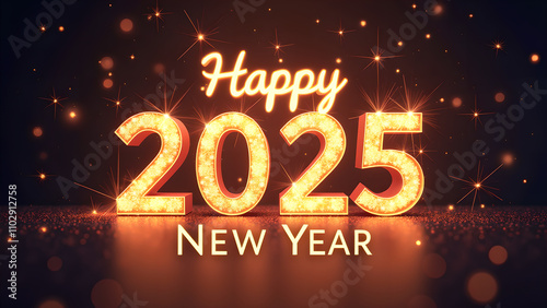 Happy New Year 2025 with glowing lights. Concept of celebration, party, and holiday.