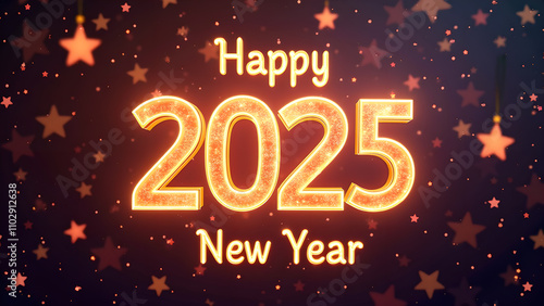 Happy New Year 2025 with golden sparkle. Concept of celebration, holiday, and party.