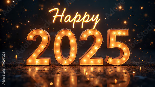 Happy New Year 2025 with illuminated numbers. Festive celebration concept.
