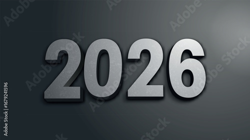 Happy New Year 2026 3D Effect Grey Texture on Dark Gradient Background