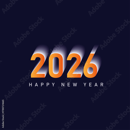 Happy New Year 2026 Greeting Card with Glowing Orange Typography on Dark Background Vector Illustration