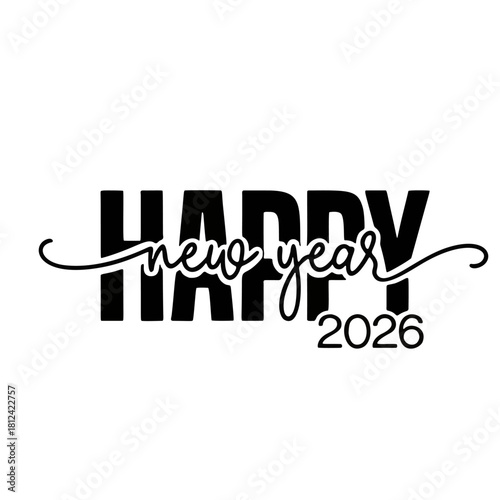 “Happy New Year 2026 T Shirt Design – Modern Script Typography with Bold Text, Minimal Holiday Graphic, Printable PNG, Trendy New Year Outfit, Gift for Friends and Family”