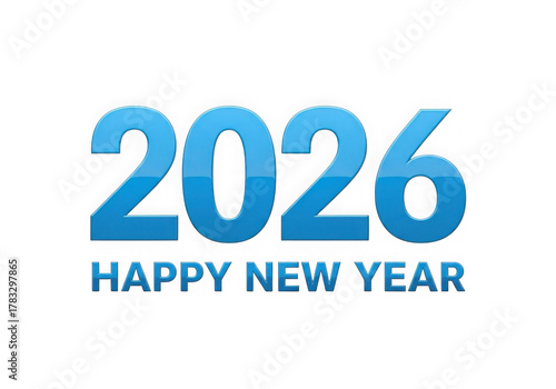 Happy new year 2026 text design with blue glossy numbers isolated on transparent background