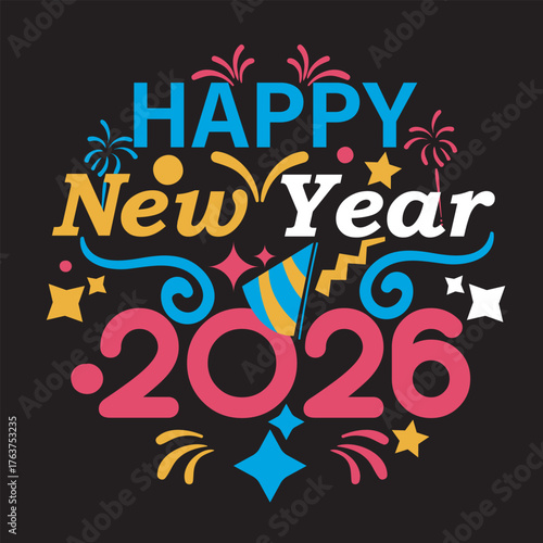 happy new year 2026 text effect design, Best T shirt Design, Happy New Year, Best Wishes Of New Year, Best T Shirt.