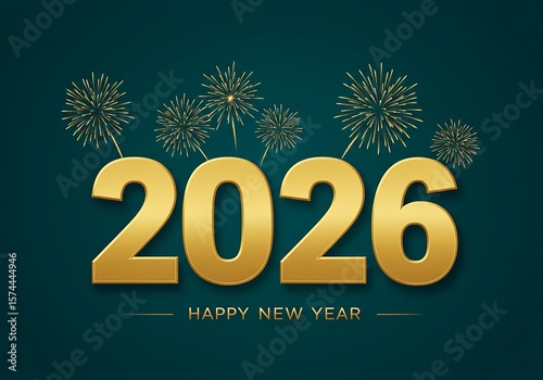 Happy new year 2026 with golden numbers and fireworks