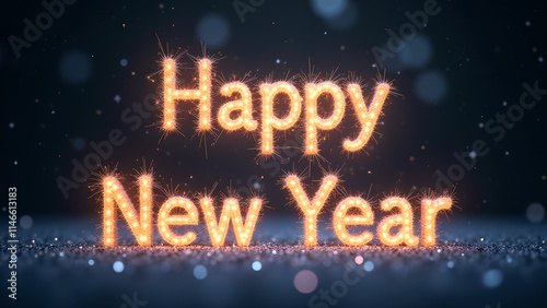 Happy New Year greeting with sparklers. Concept of celebration and new beginnings.