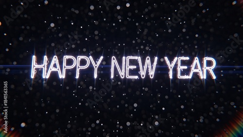 Happy New Year Neon Sign Illuminated Against Festive Night.