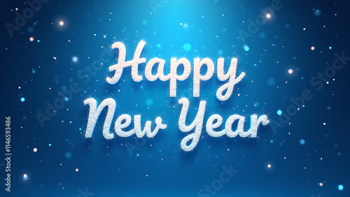 Happy New Year text on blue background. Concept of celebration, holiday, and new beginnings.