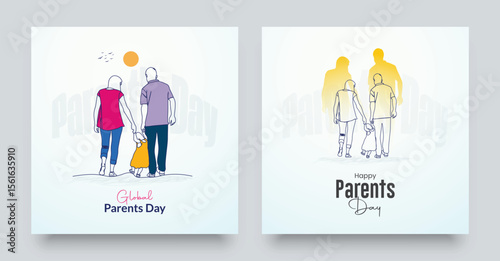Happy Parents Day Vector Illustration. Parents day social media post template. Set Parents day banner design. Suitable for Poster, Banners, mobile apps, campaign and greeting card.