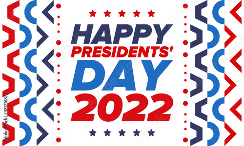 Happy Presidents day in United States. Washington's Birthday. Federal holiday in America. Celebrated in February. Patriotic american elements. Poster, banner and background. Vector illustration