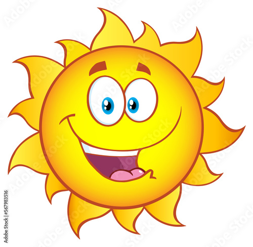 Happy Sun Cartoon Mascot Character With Gradient. Hand Drawn Illustration Isolated On Transparent Background