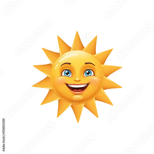 Happy sun character with a wide grin and extended rays, looking playful