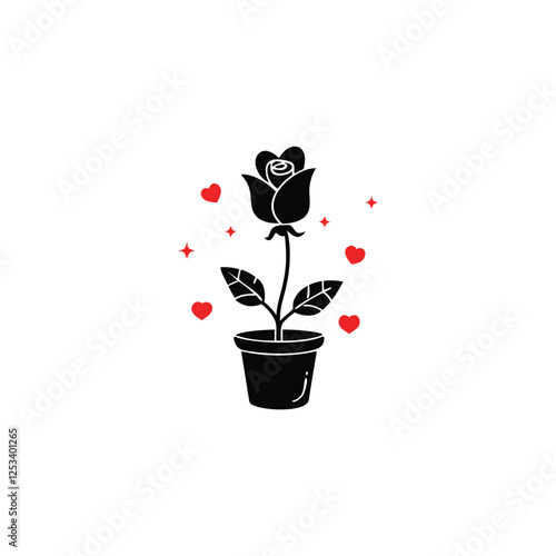 happy valentines day , flower in a pot anniversary, clip art, concepts, cut out, doodle, enjoyment, flirting, friendship, handwriting,